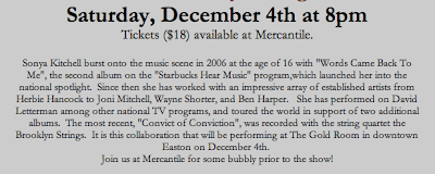 Just wanted to say we attended this show last night and it was first class all the way. Ms Kitchell has an amazing voice and the Brooklyn Strings were fabulous.